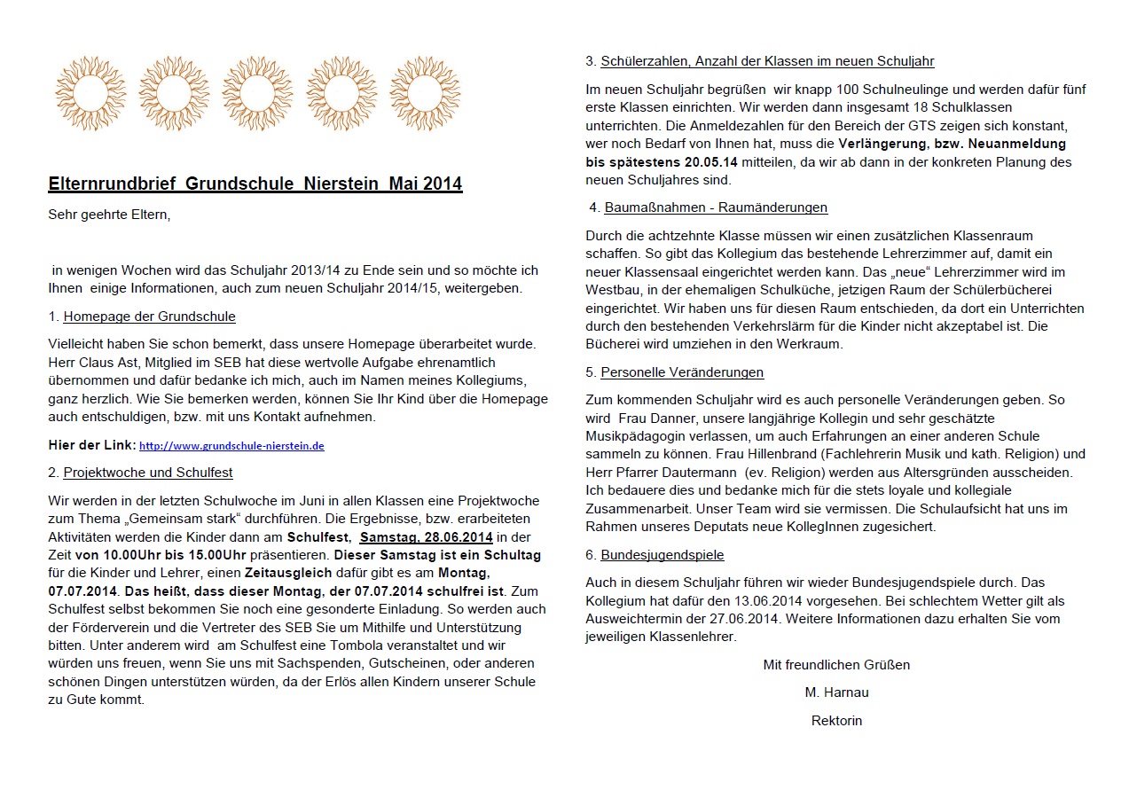 Ich grüße Sie ganz herzlich und wünsche uns allen ein gutes, erfolgreiches Schuljahr,