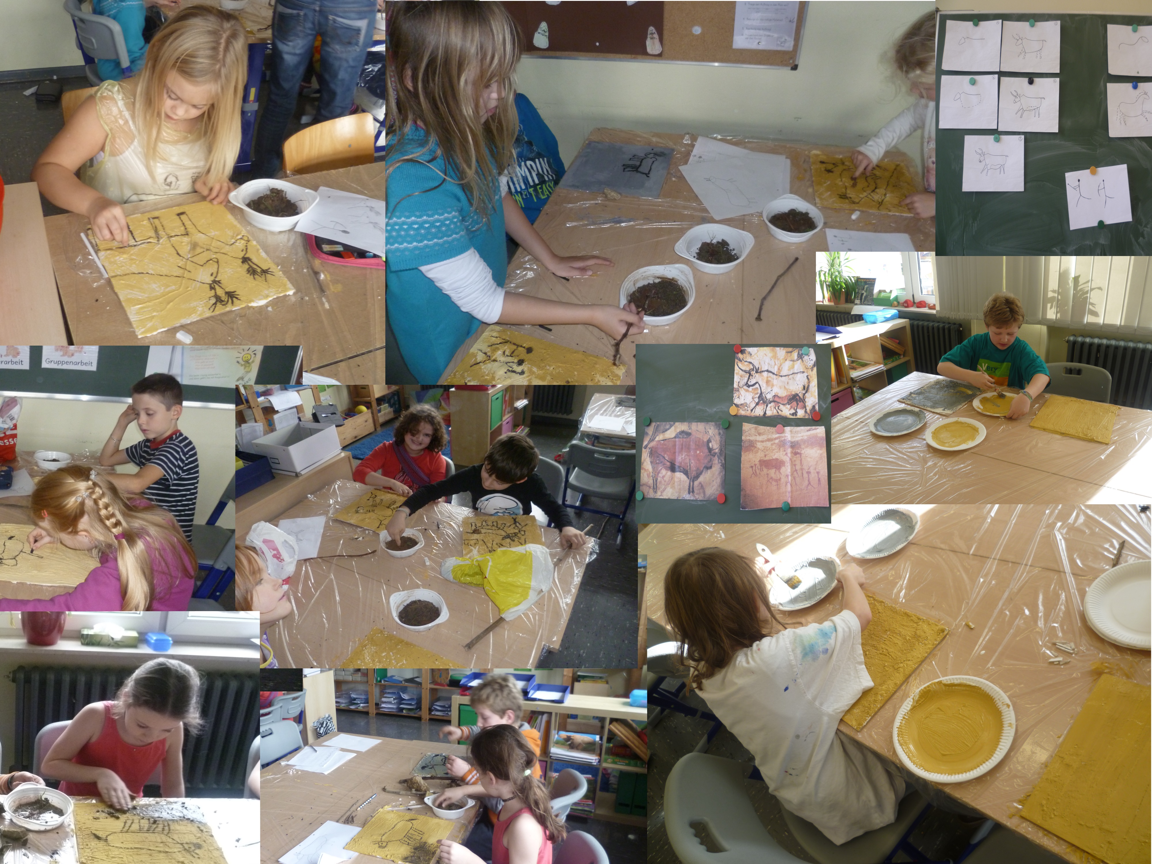 Collage Kunstprojekt Steinzeit
