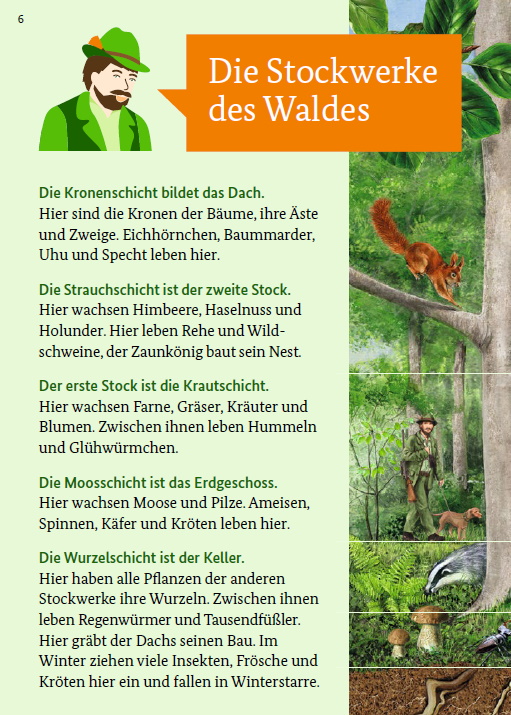 Bundesministerin für Ernährung und Landwirtschaft: Entdecke den Wald – Die kleine Waldfibel, 2018, Seite 6 und 7